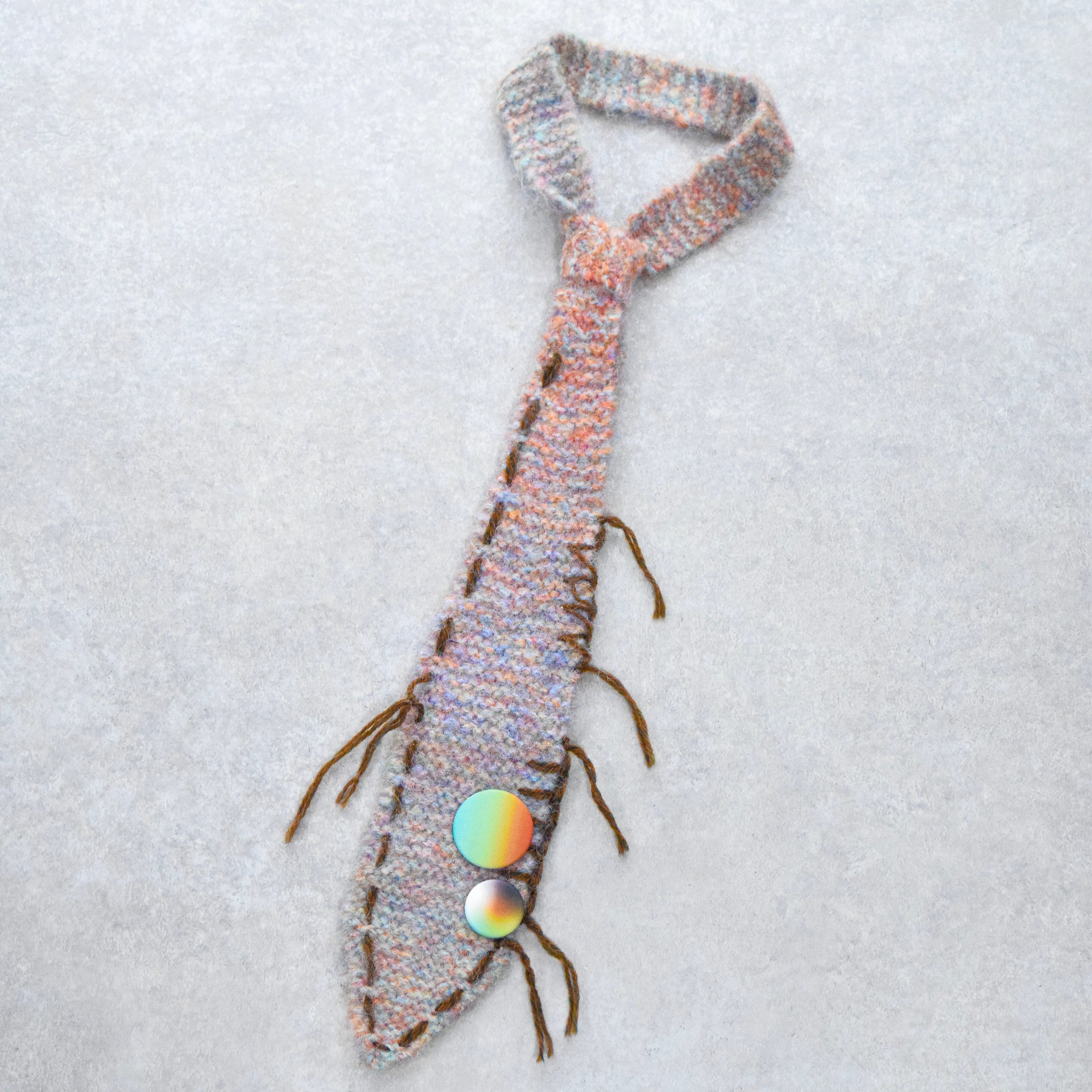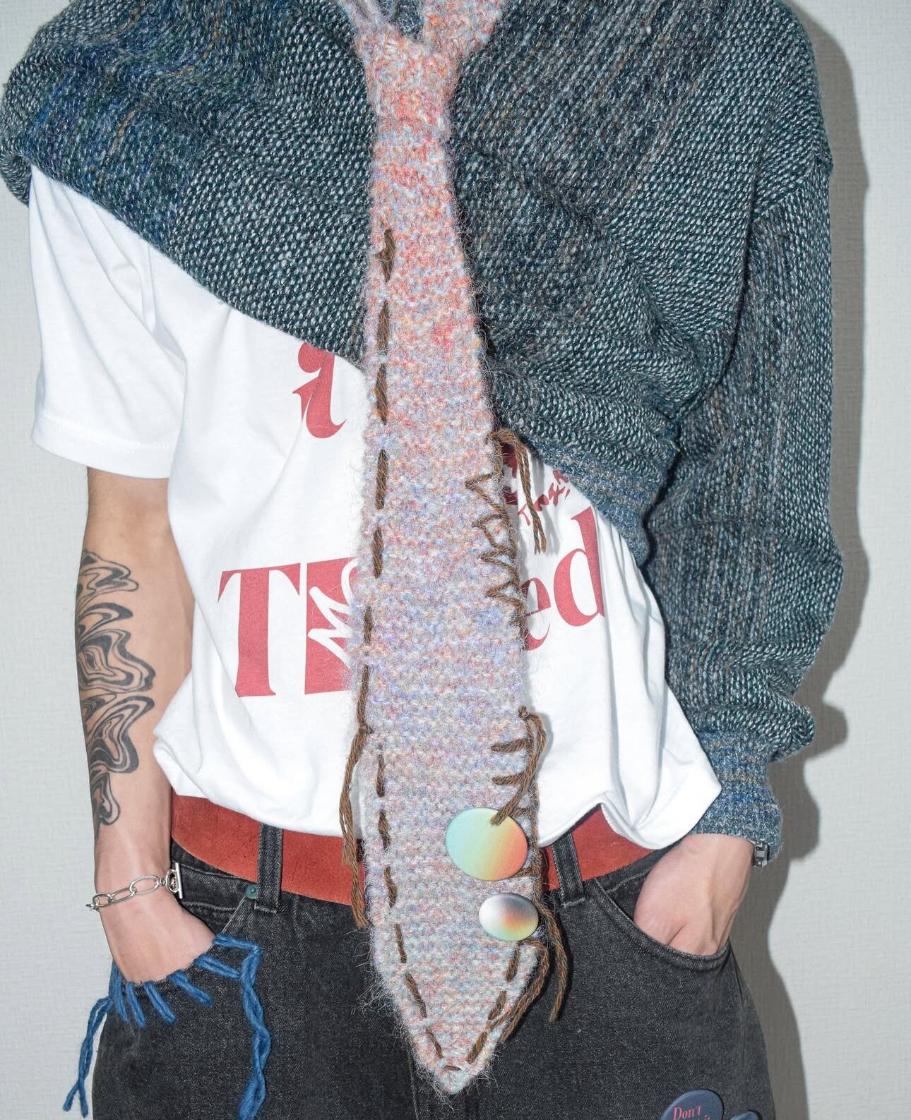 ・1つ1つ手作業で編まれた柔らかい風合いとステッチが特徴的なハンドニットネクタイ。