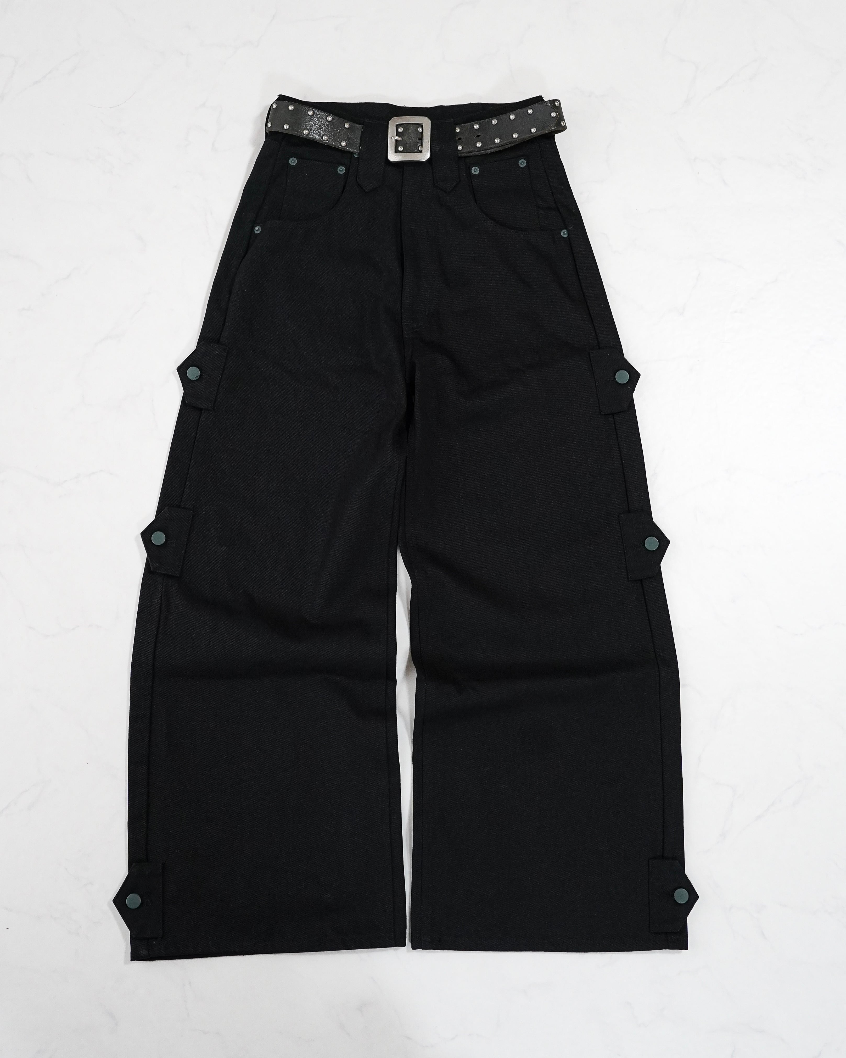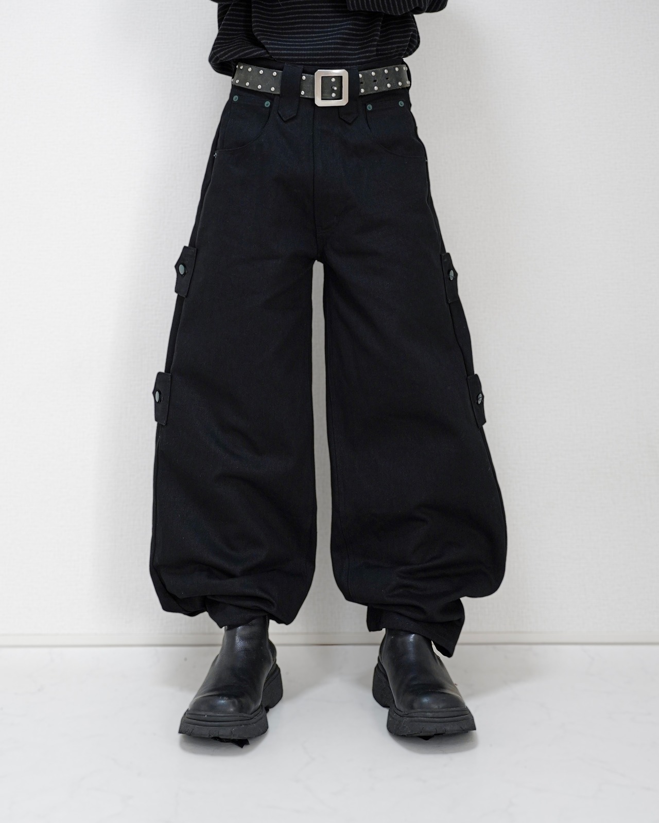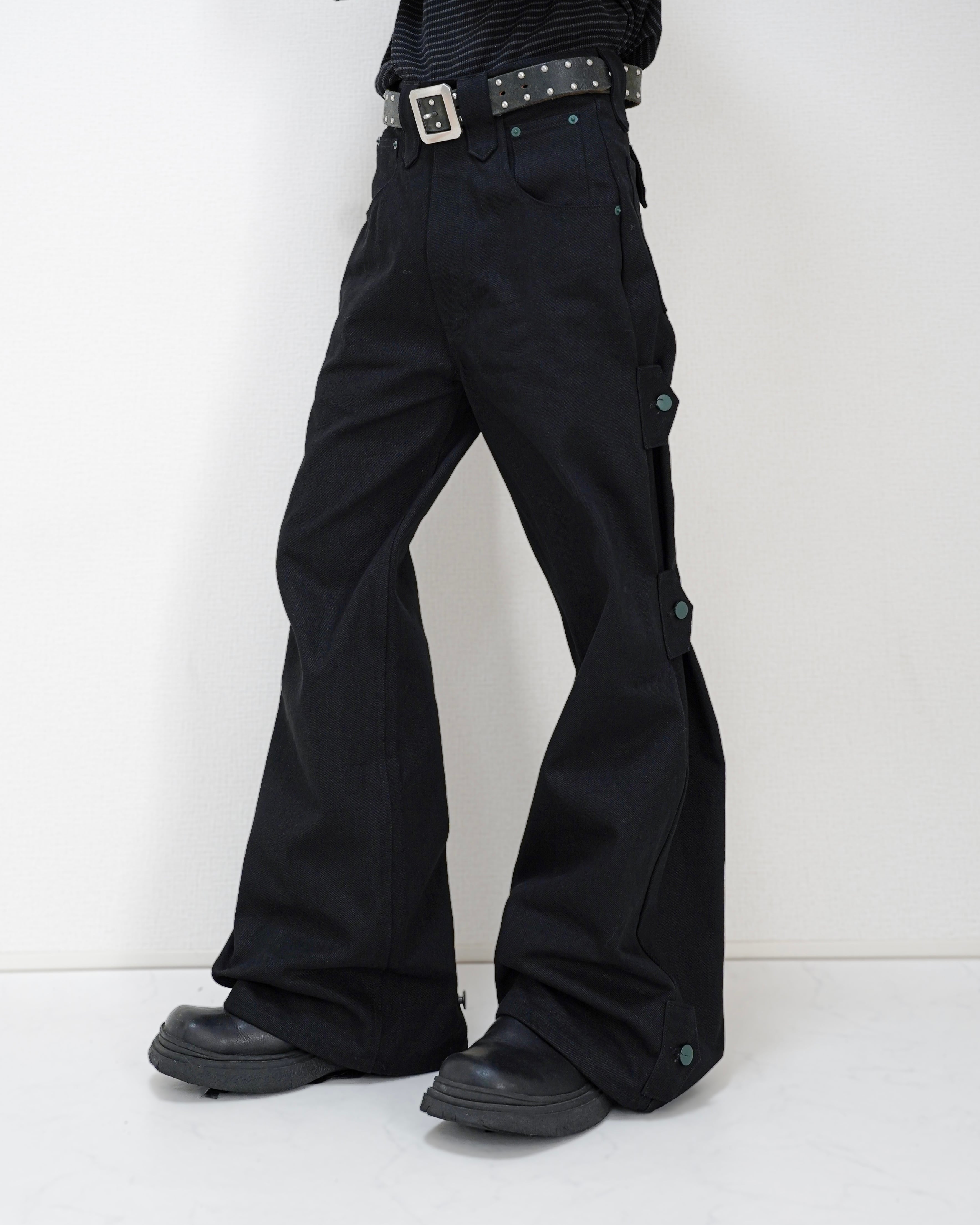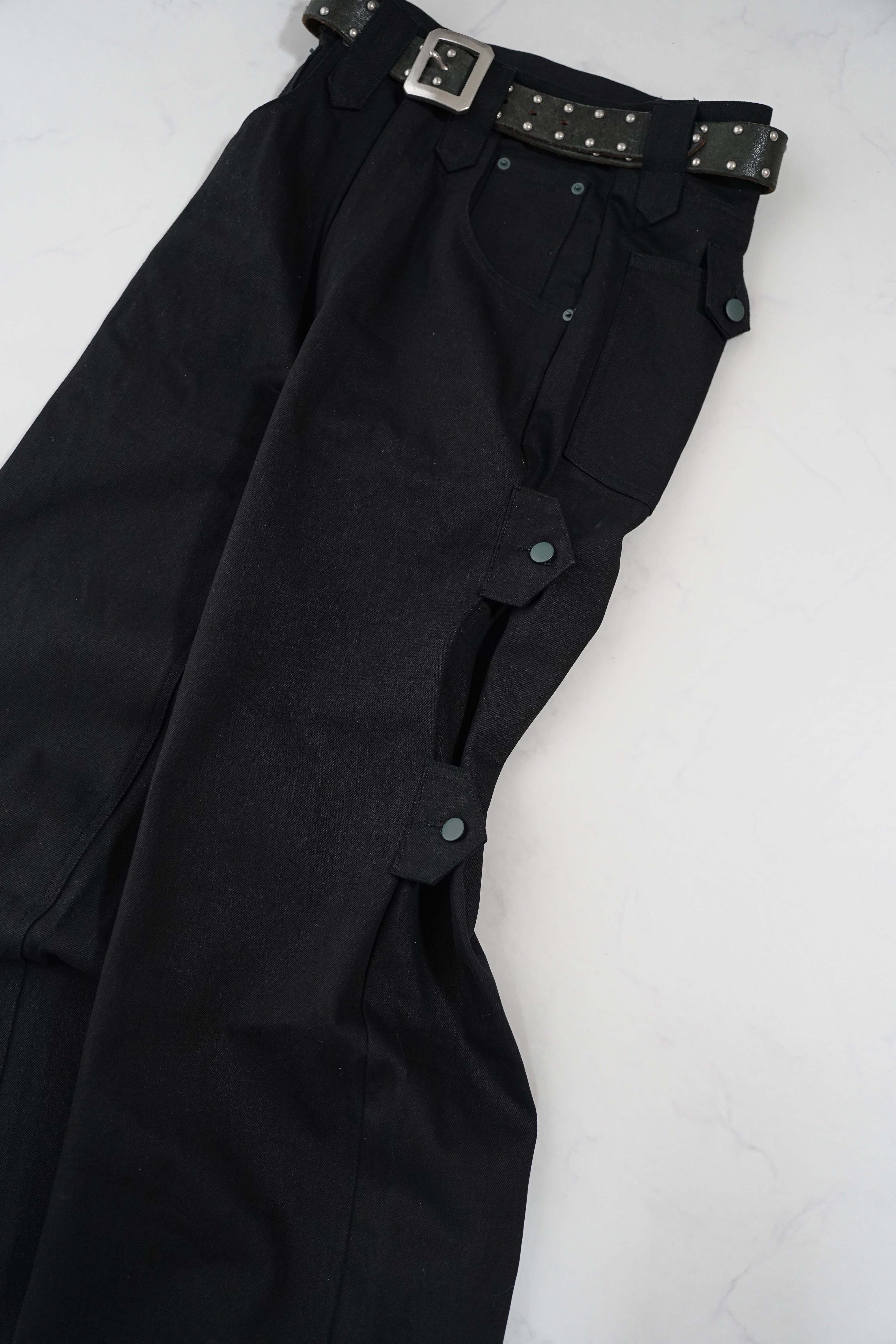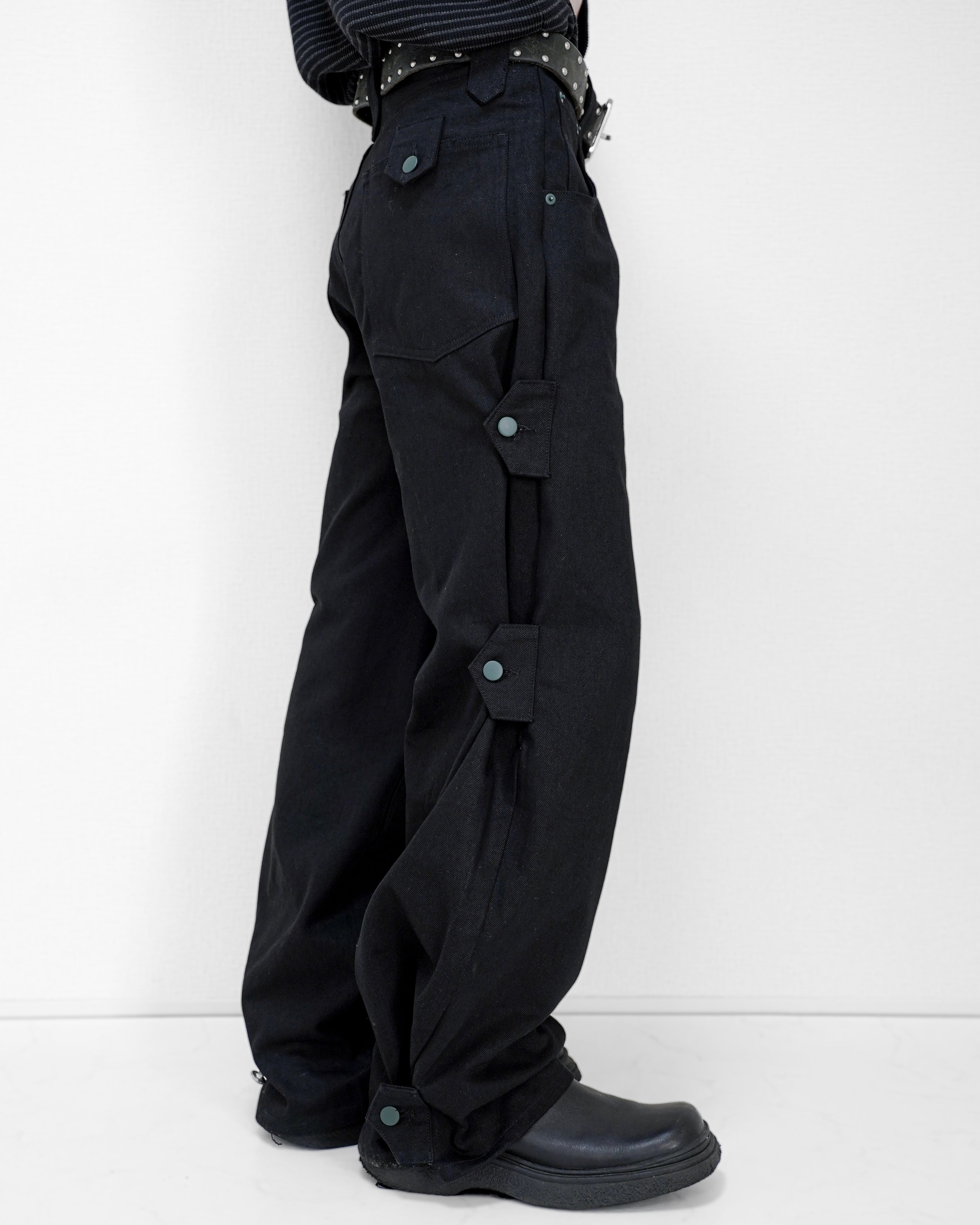 TΣist 4way Side Belt Rigid Denim Pants / BLACK