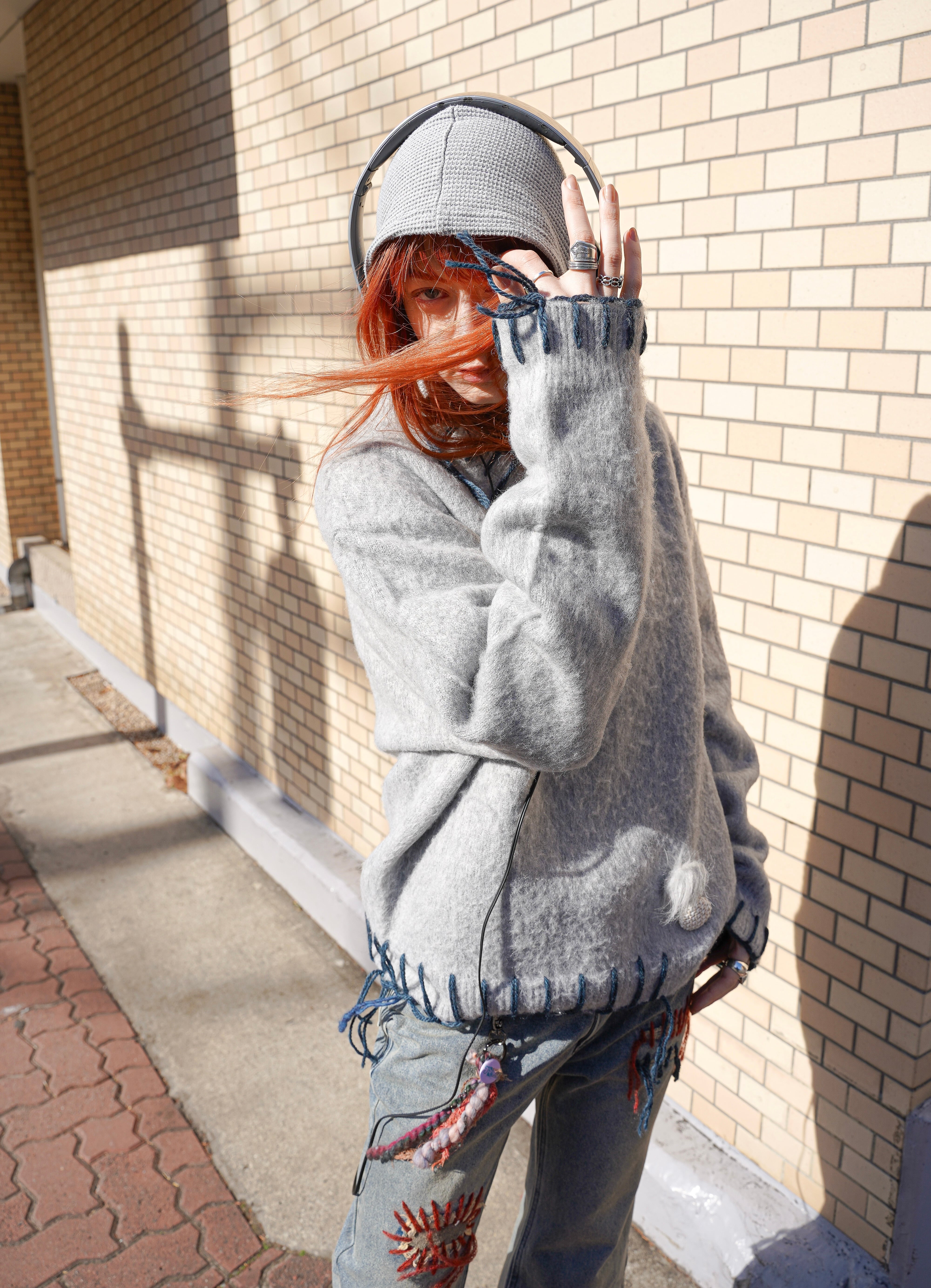 ・表面に起毛感を持たせた、存在感のあるニット素材。