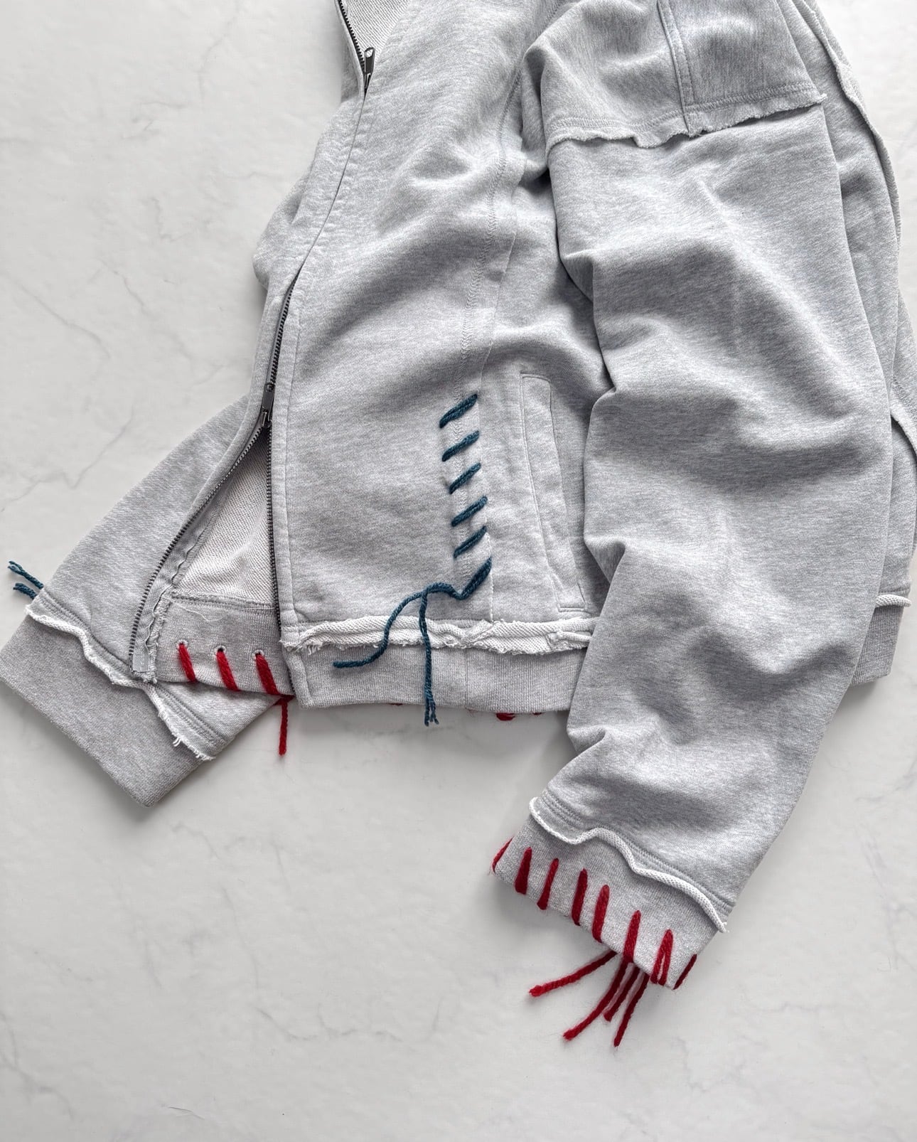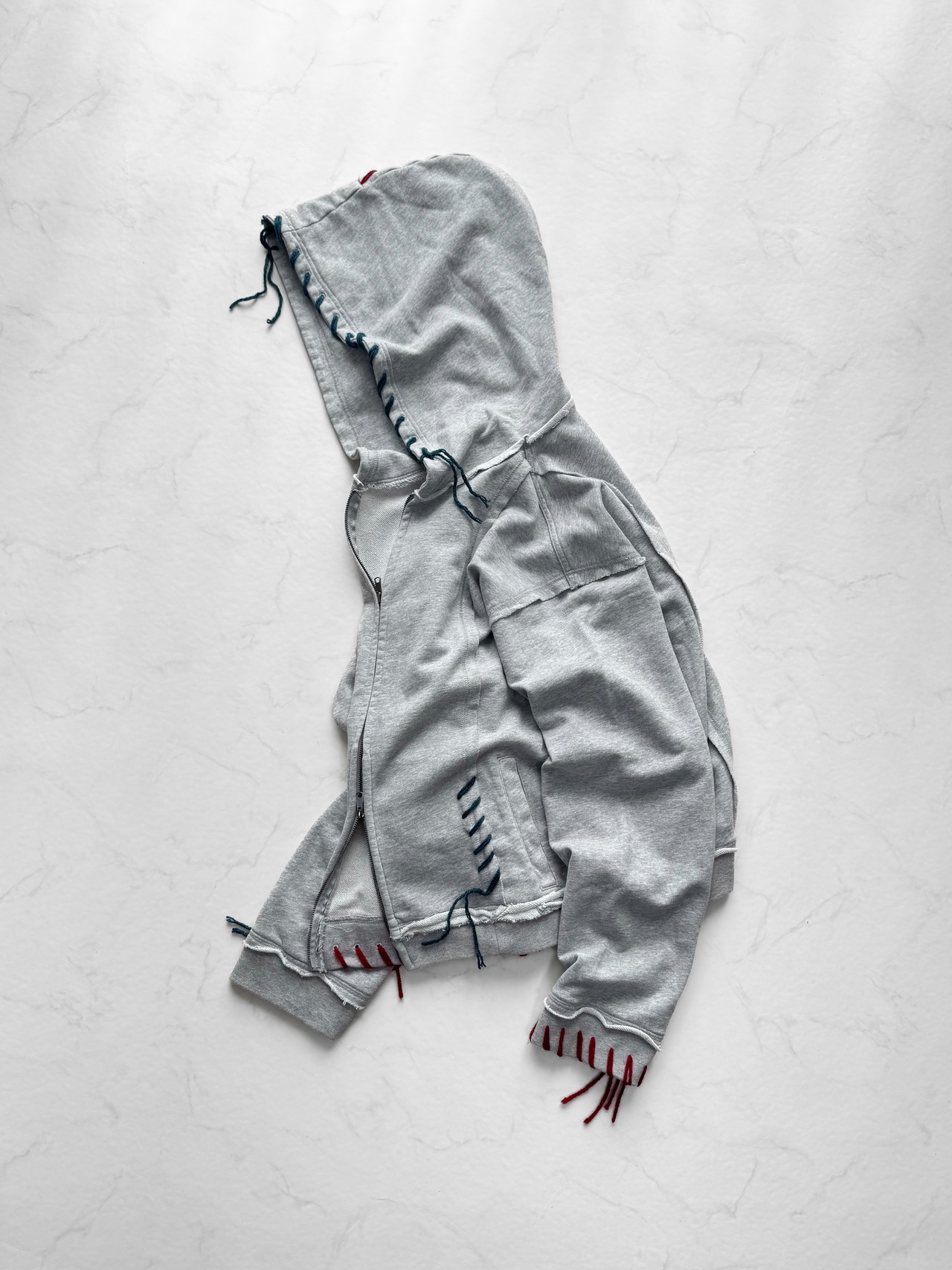 Hand Stitch Zip Hoodie / Gray