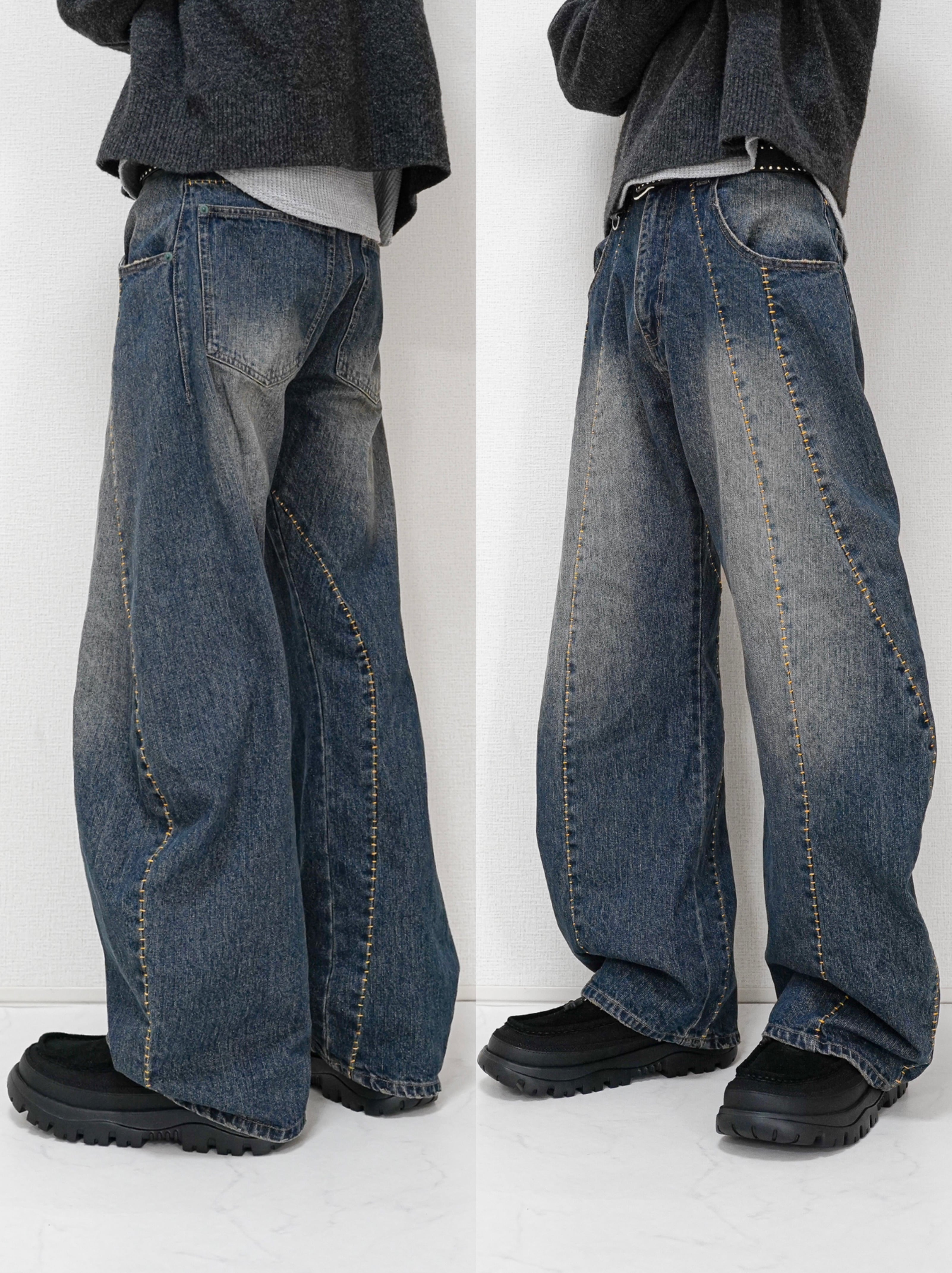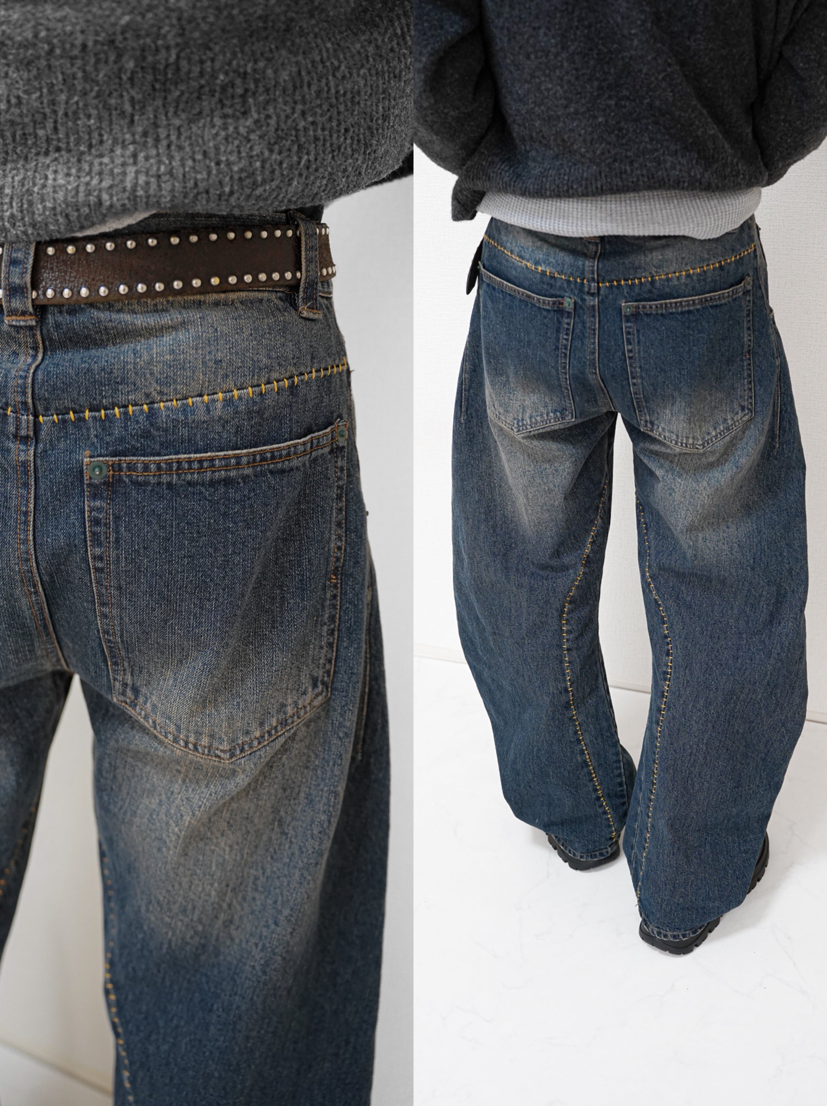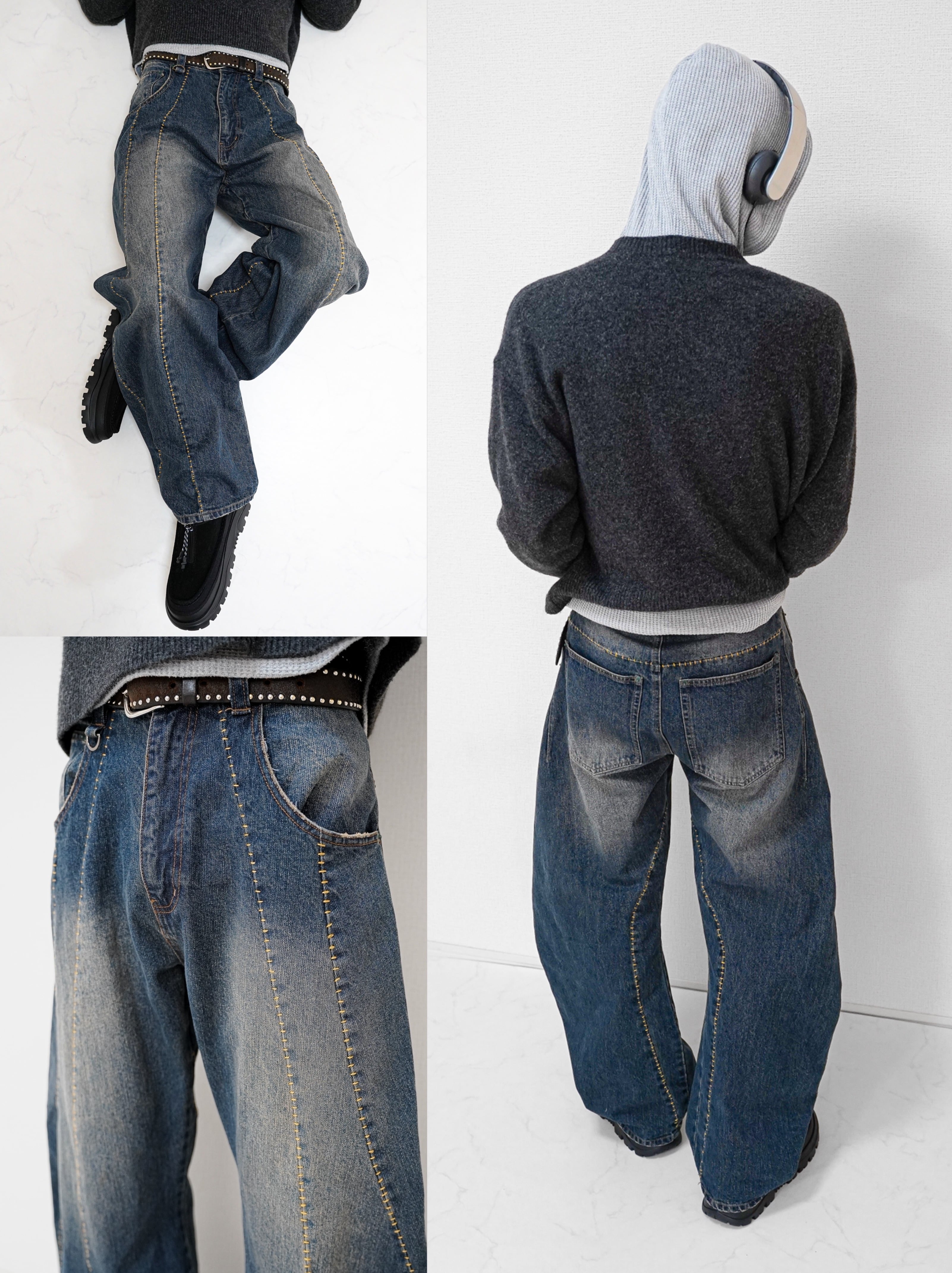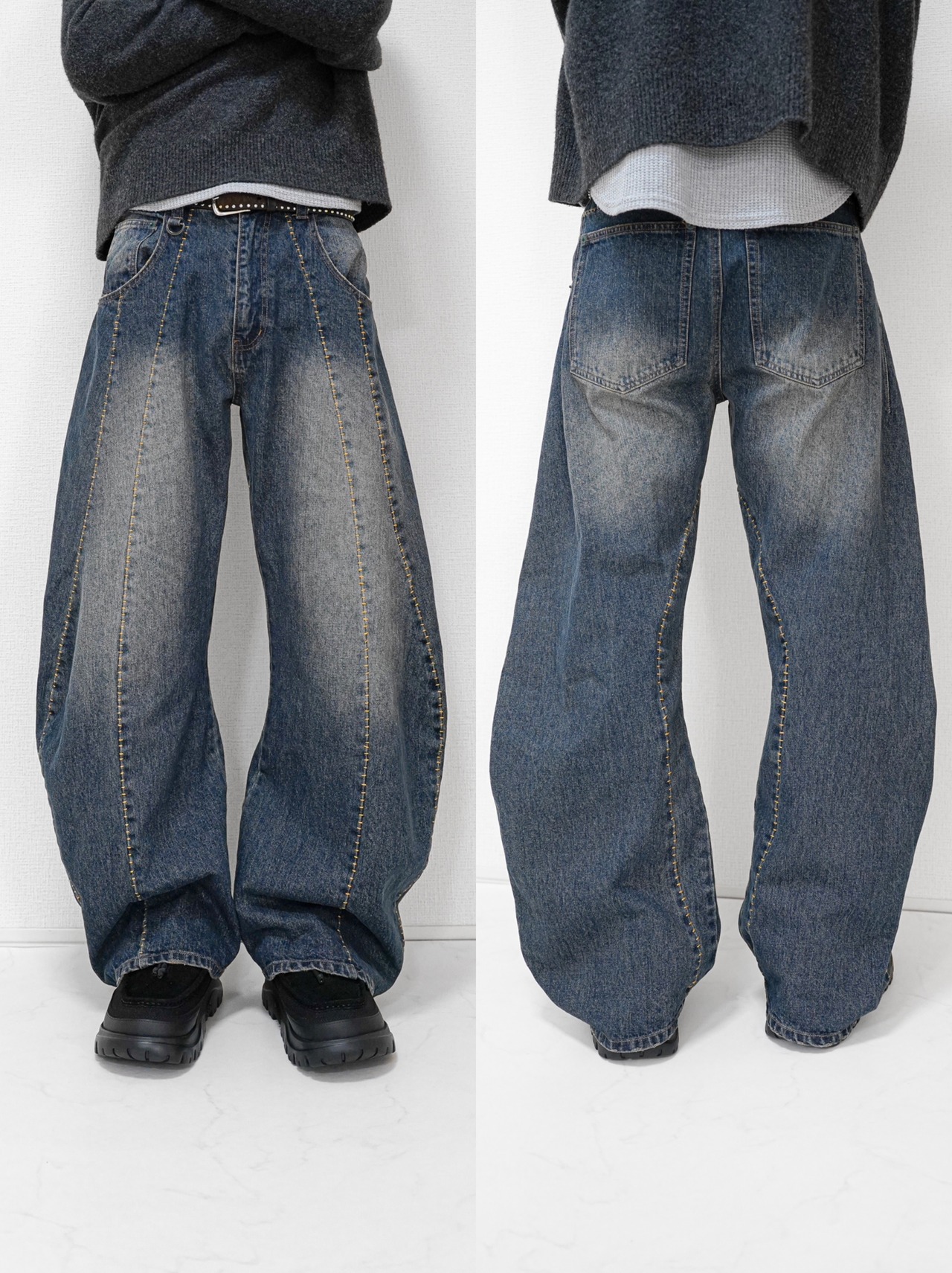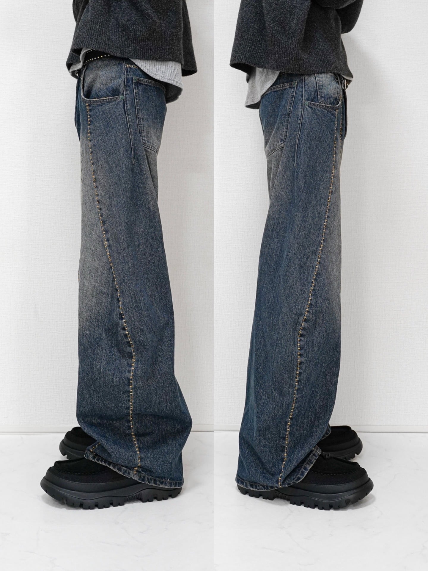 ・立体裁断により独特な丸みと太さのあるシルエット。