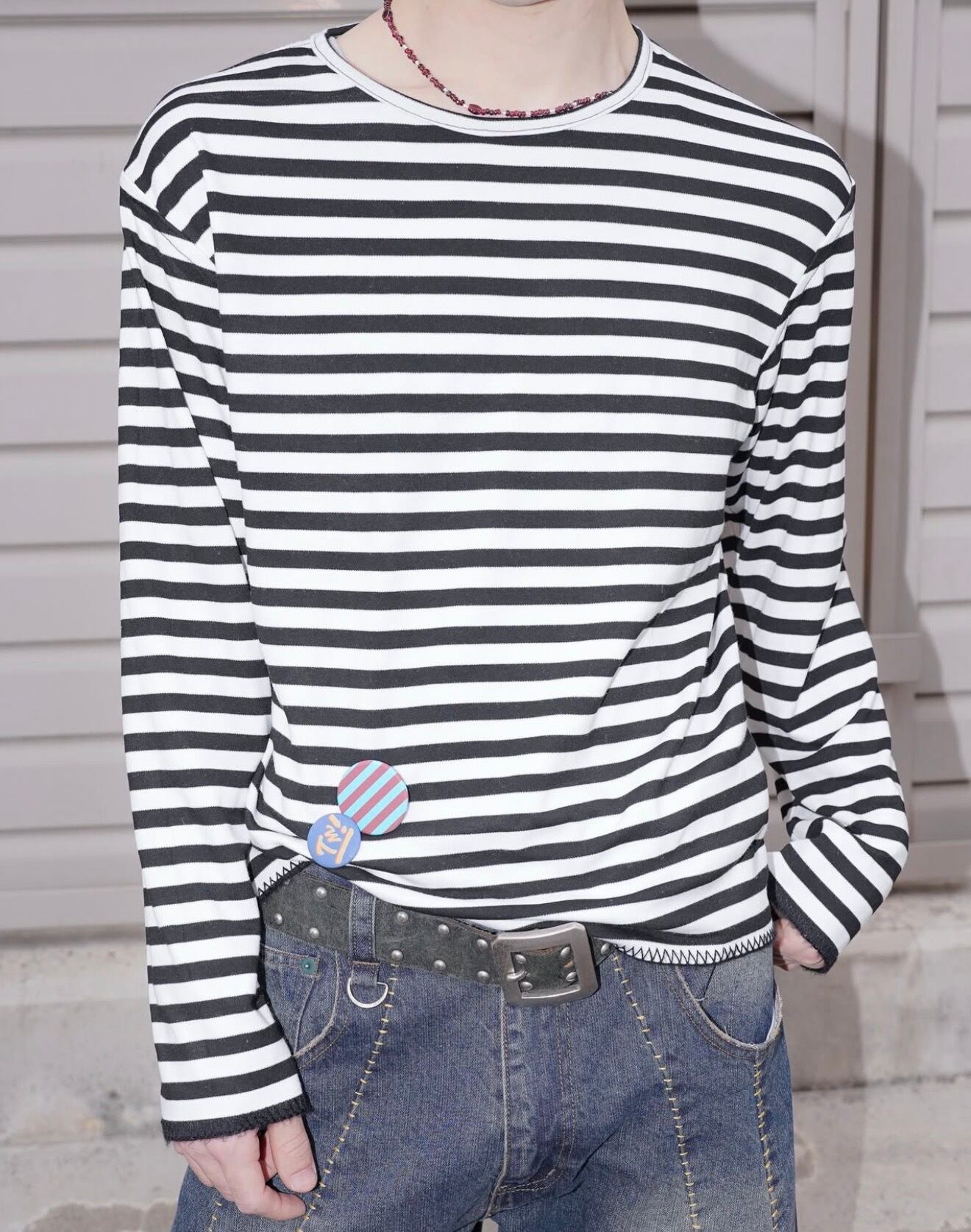 2WAY Reversible Border LS Tee / Black x White